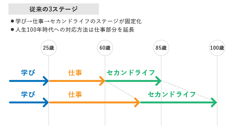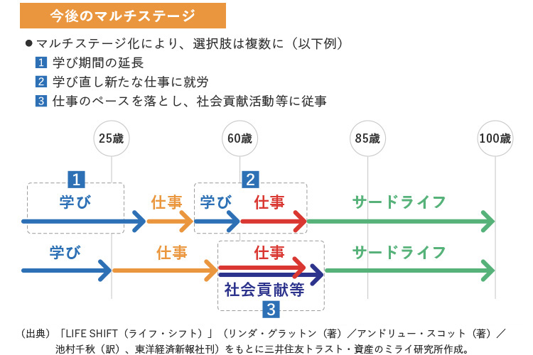 など、リカレントな教育と新しいステージが複数回、あらわれてくる、これが、「人生のマルチステージ化」と呼ばれています。